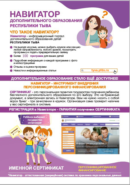 Все муниципальные, а в будущем и частные организации, реализующие программы дополнительного образования, которые хотят функционировать в системе персонифицированного дополнительного образования, будут входить в реестр поставщиков образовательных услуг и вносить свои образовательные программы в специальный навигатор информационной системы. В настоящее время работа по регистрации поставщиков образовательных услуг в информационной системе https://tyva.pfdo.ru/ уже ведется.