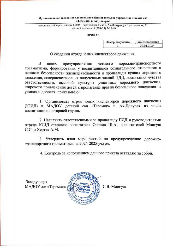 Торжественное церемония открытия отряда «Юных инспекторов движения» старшей группы «Пчелки». https://vk.com/wall-217249658_1286