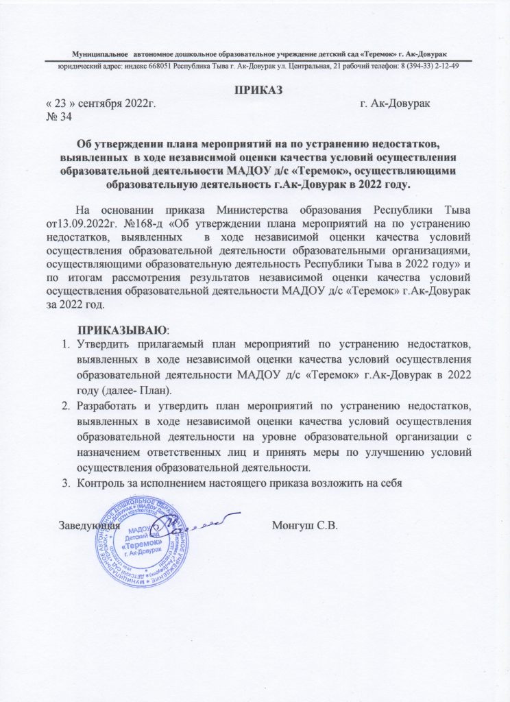 Раздел НОКО QR МАДОУ детского сада «Теремок» Скачать МАДОУ-Теремок-г.-Ак-Довурак-1Скачать МАДОУ-Теремок-г.-Ак-ДовуракСкачать Приложение-1-к-приказу-НОКОСкачать Критерии-НОКО-детского-сада-ТЕРЕМОК-г.Ак-ДовуракСкачать Акты-МБДОУ-Теремок-г.Ак-ДовуракСкачать Паспорта-МБДОУ-ТеремокСкачать план-по-устранению-недостатков-выявленных-в-ходе-НОКО-2021Скачать План по устранению недостатков, выявленных в ходе НОКО-2021Скачать НОКО-2022Скачать