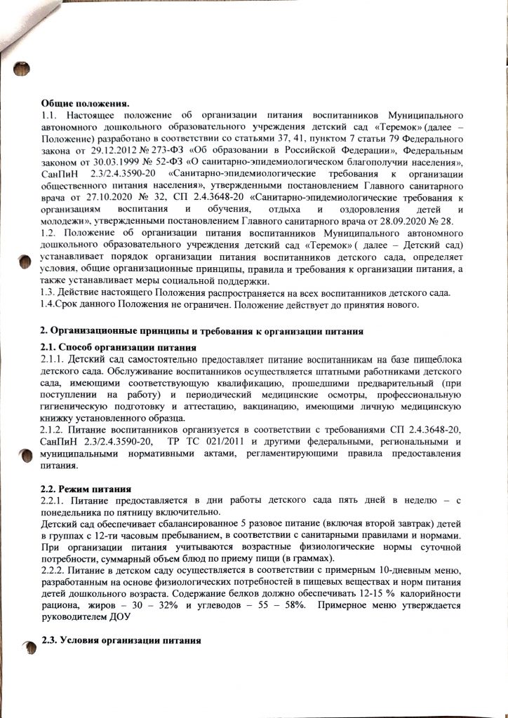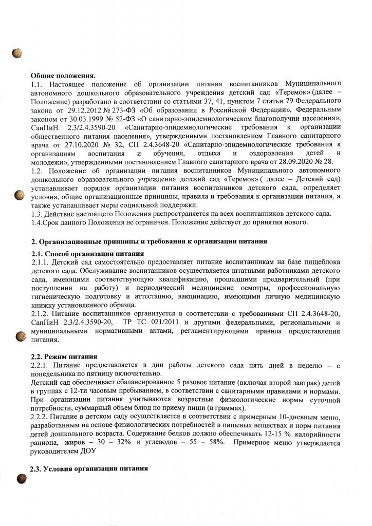 Организация питания в детском саду регламентируется требованиями СанПиН 2.4.1.3049-13 «Санитарно-эпидемиологические требования к устройству, содержанию и организации режима работы дошкольных образовательных организаций» и СанПиН 2.4.5.2409-08 «Санитарно-эпидемиологические требования к организации питания обучающихся в общеобразовательных учреждениях, учреждениях начального и среднего профессионального образования».