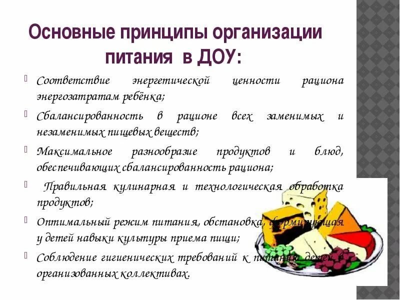 Основные требования к организации питания детей: